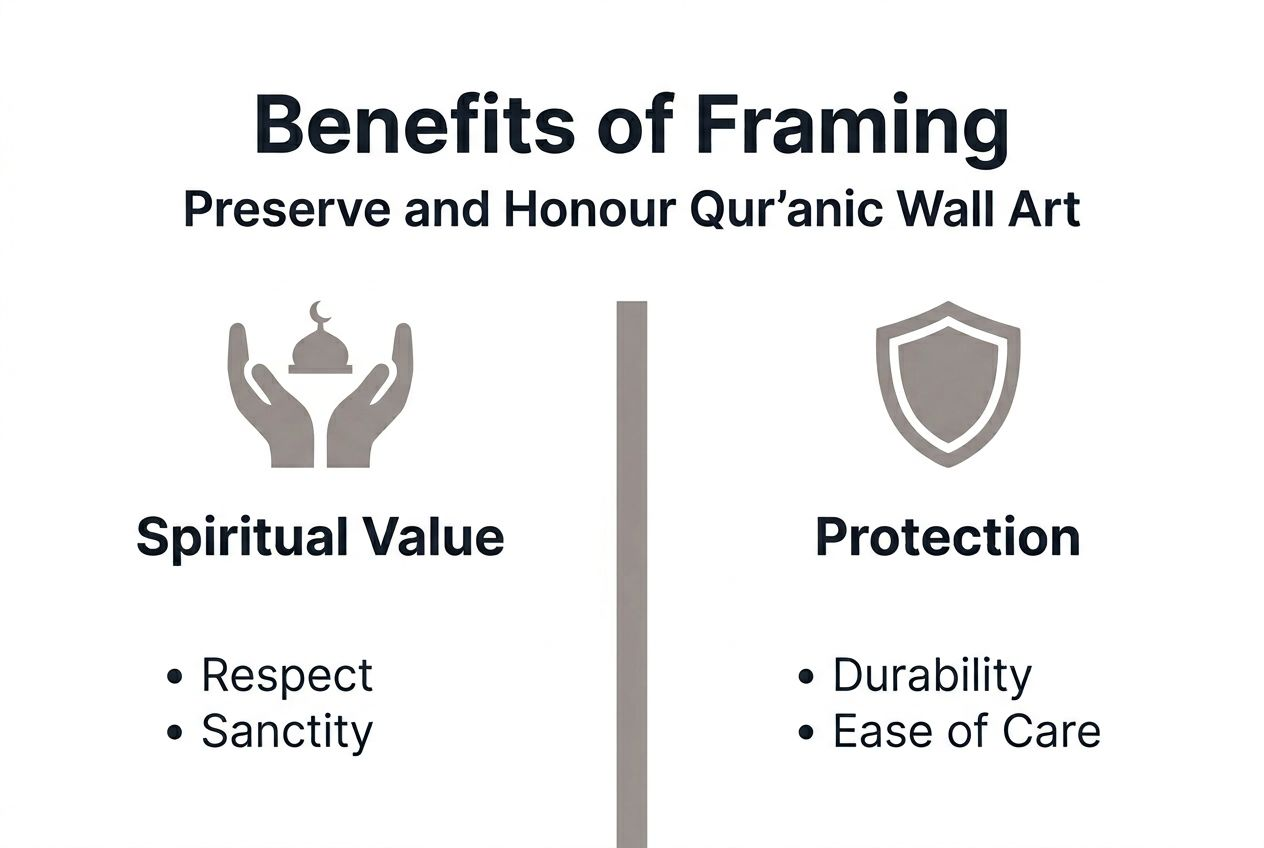 | Spiritual respect | Framing honours Qur’anic art by protecting sacred text from damage and demonstrating devotion through careful preservation |